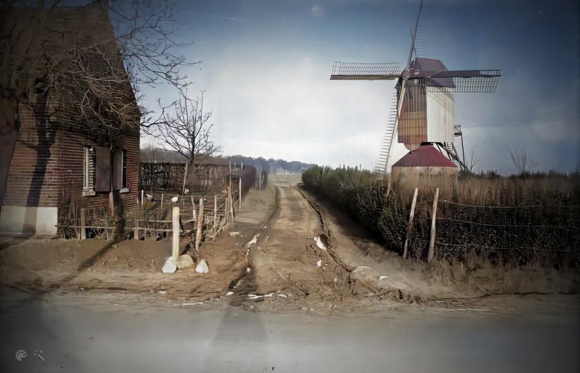 De molen in vroegere tijden met links het huis van molenaar Toon Gastreich