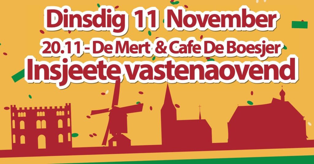 En natuurlik vriedig 14 november is idderein welkom vanaaf 20.11oër in de verniejde Paort waor de Kever van ut jaor bekind gemaakt zal waere.