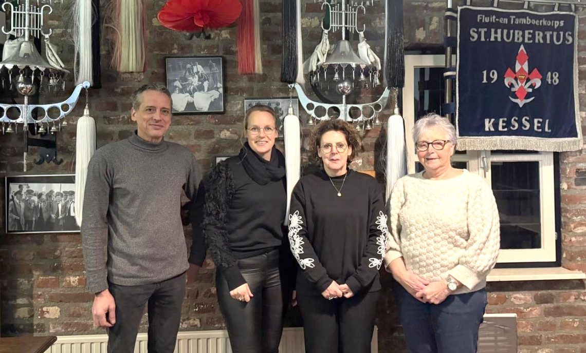 Tegen het einde van de vlotte vergadering werden de jubilarissen door onze secretaris Angela Verstraeten uit naam van de LBT (Limburgse Bond van Tamboerkorpsen) en schutterij St. Hubertus in het zonnetje gezet.