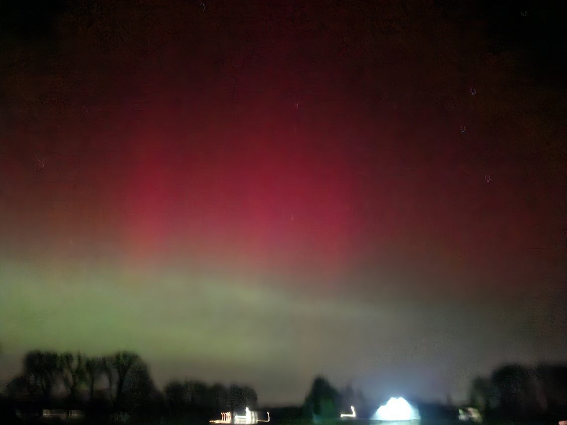 Gisteravond tussen 22.00 uur en middernacht was het ook hier te bewonderen, Aurora Borealis oftewel het Noorderlicht. Met het blote oog wat minder maar als je foto’s maakte kwam de lucht tot leven in de prachtigste kleuren. Deze foto’s zijn gemaakt op het donkere zandpad tussen Ursulahof en de Rijksweg richting Hazenakkerweg. Het is vrij uniek dat we het hier zo duidelijk zien.